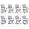 Chaises pliables d'extérieur lot de 8 et coussins Bois d'acaciaCet ensemble de chaises de salle à manger en bois contemporain avec coussins ajoute une touche de style naturel à votre jardin, terrasse ou patio. Cet ensemble de chaises pliables est un excellent choix pour les repas. Ces chaises de salle à manger sont faites de bois d'acacia massif, un bois dur tropical, les rendant résistantes aux intempéries et durables pour des années d'utilisation. Le bois d'acacia massif a la force de soutenir le poids et de résister à l'usure du temps. La surface grise délavée est facile à nettoyer avec un chiffon humide. Les chaises peuvent être repliées pour économiser de l'espace lorsqu'elles ne sont pas utilisées. De plus, les coussins inclus offrent un confort supplémentaire lors des moments de détente ou des repas. Chaque coussin comporte deux ensembles de cordes pour le fixer fermement à la chaise. Remarque : Afin de prolonger la durée de vie de vos meubles d'extérieur, nous vous recommandons de les nettoyer régulièrement et de ne pas les laisser à l'extérieur sans protection inutilement. Nettoyage : Utiliser une solution savonneuse douce Stockage : Si possible, stockez dans un endroit frais et sec à l'intérieur. Si le produit est stocké à l'extérieur, protégez-le avec une housse imperméable. Essuyez et séchez l'excès d'eau ou de neige des surfaces planes après la pluie ou une chute de neige. Permettez une circulation d'air suffisante afin d'éviter les dommages liés à l'humidité. Maximum 110 kg par siège.