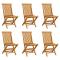Chaises pliables de jardin 6 pcs Bois de teck solideCet ensemble de 6 chaises de jardin pliables en bois est un excellent supplément pour votre usage extérieur. Il est également un excellent choix pour manger dans le jardin ou sur le patio. Robuste et stable : le bois de teck massif est un matériau naturel magnifique. Il a été chevronné, séché au four, puis sablé finement pour lui donner une apparence très lisse. Le bois de teck est connu pour sa résistance exceptionnelle et sa résistance aux intempéries. Une expérience d'assise confortable : dotée d'un dossier, la chaise d'extérieur vous offre un confort optimal. Design à lattes : le design à lattes de la chaise de jardin en bois empêche l'accumulation de l'eau, ce qui permet de garder le siège au sec et d'éviter un pourrissement inutile. Design pratique : ces chaises de jardin sont également légères, ce qui les rend complètement flexibles et faciles à déplacer. De plus, les chaises d'extérieur peuvent être facilement repliées lorsqu'elles ne sont pas utilisées. Bon à savoir : Pour que vos meubles d'extérieur restent beaux, nous vous recommandons de les protéger avec une housse imperméable. Maximum 110 kg par siège. ,