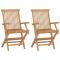 Chaises pliables de jardin lot de 2 Bois de teck solideCet ensemble de chaises de jardin en teck se compose de 2 pièces et sera un ajout excellent dans votre jardin, terrasse ou patio pour vous détendre avec la famille et les amis. Fabriquée en bois dur de teck extrêmement durable, cette pièce de meuble en teck a été chevronnée, séchée au four puis finement poncée pour lui donner un aspect très lisse. Le bois de teck est connu pour sa résistance exceptionnelle aux intempéries, ce qui le rend bien plus adapté aux meubles de jardin que tout autre type de bois. Le bois de teck est le choix idéal si vous souhaitez acheter une pièce de meubles de jardin durable. Ses sièges et dossiers sont conçus de manière ergonomique, ce qui ajoute au confort d'assise. La surface sablée est facile à nettoyer avec un chiffon humide. Elles sont également légères, ce qui les rend complètement flexibles et faciles à déplacer. Les chaises en bois peuvent être pliées pour économiser l'espace quand elles ne sont pas utilisées. La livraison comprend 2 chaises de jardin. Maximum 110 kg par siège. ,