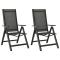 Chaises pliables de jardin lot de 2 Textilène et aluminium NoirProfitez d'un temps de loisirs confortable avec vos amis ou votre famille dans votre espace extérieur sur cet ensemble de chaises de jardin pliables ! Le cadre en aluminium enduit de poudre rend la chaise d'extérieur robuste et durable, offrant un service à vie. Le fauteuil dispose d'un dossier réglable qui peut être incliné en 7 positions, de sorte que vous puissiez toujours trouver la position la plus confortable. Le siège est confortable avec textilène respirant. Remarque : afin de prolonger la durée de vie de vos meubles d'extérieur, nous vous recommandons de les nettoyer régulièrement et de ne pas les laisser à l'extérieur sans protection inutilement. Nettoyage : utiliser une solution savonneuse douce Stockage : si possible, stockez dans un endroit frais et sec à l'intérieur. Si le produit est stocké à l'extérieur, protégez-le avec une housse imperméable. Essuyez et séchez l'excès d'eau ou de neige des surfaces planes après la pluie ou une chute de neige. Permettez une circulation d'air suffisante afin d'éviter les dommages liés à l'humidité. Maximum 110 kg par siège. ,