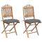 Chaises pliables de jardin lot de 2 avec coussins BambouCet ensemble de 2 chaises de jardin avec coussins sera un excellent choix pour les repas en plein air dans le jardin ou sur la terrasse. Fabriquée en bambou massif, la chaise d'extérieur est résistante et durable. Elle est également résistante aux intempéries et imperméable et facile à nettoyer avec un chiffon humide. La chaise de salle à manger est pliable pour économiser de l'espace de stockage lorsqu'elle n'est pas utilisée. De plus, les coussins fournis offrent du confort supplémentaire lors de la détente. Elle est composée à 100 % de polyester, ce qui la rend résistante et durable pour être adaptée à une utilisation en plein air. Chaque coussin a deux jeux de cordes pour le fixer fermement sur la chaise. Remarque : Afin de prolonger la durée de vie de vos meubles d'extérieur, nous vous recommandons de les nettoyer régulièrement et de ne pas les laisser à l'extérieur sans protection inutilement.Nettoyage : Utiliser une solution savonneuse douceStockage : Si possible, stockez dans un endroit frais et sec à l'intérieur. Si le produit est stocké à l'extérieur, protégez-le avec une housse imperméable. Essuyez et séchez l'excès d'eau ou de neige des surfaces planes après la pluie ou une chute de neige. Permettez une circulation d'air suffisante afin d'éviter les dommages liés à l'humidité. Maximum 110 kg par siège.