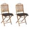 Chaises pliables de jardin lot de 2 avec coussins BambouCet ensemble de 2 chaises de jardin avec coussins sera un excellent choix pour les repas en plein air dans le jardin ou sur la terrasse. Fabriquée en bambou massif, la chaise d'extérieur est résistante et durable. Elle est également résistante aux intempéries et imperméable et facile à nettoyer avec un chiffon humide. La chaise de salle à manger est pliable pour économiser de l'espace de stockage lorsqu'elle n'est pas utilisée. De plus, les coussins fournis offrent du confort supplémentaire lors de la détente. Elle est composée à 100 % de polyester, ce qui la rend résistante et durable pour être adaptée à une utilisation en plein air. Chaque coussin a deux jeux de cordes pour le fixer fermement sur la chaise. Maximum 110 kg par siège. ,