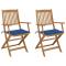 Chaises pliables de jardin lot de 2 avec coussins Bois d'acaciaCes chaises pliables en bois d'acacia massif avec coussins sont un endroit idéal pour vous détendre et profiter du soleil dans le jardin ou sur le patio. Ces chaises de jardin sont fabriquées en bois d'acacia massif, ce qui les rend solides et stables. Le bois d'acacia massif a la force de soutenir le poids et résiste à l'usure du temps. Ainsi, ces chaises d'extérieur offrent des années de détente. De plus, les chaises peuvent être pliées pour économiser de l'espace lorsqu'elles ne sont pas utilisées. Les coussins inclus ajoutent un confort supplémentaire. Chaque coussin comporte deux ensembles de cordes pour le fixer solidement sur la chaise. Maximum 110 kg par siège.