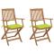 Chaises pliables de jardin lot de 2 avec coussins Bois d'acaciaCes chaises pliables en bois d'acacia massif avec coussins sont un endroit idéal pour vous détendre et profiter du soleil dans le jardin ou sur le patio. Ces chaises de jardin sont fabriquées en bois d'acacia massif, ce qui les rend solides et stables. Le bois d'acacia massif a la force de soutenir le poids et résiste à l'usure du temps. Ainsi, ces chaises d'extérieur offrent des années de détente. De plus, les chaises peuvent être pliées pour économiser de l'espace lorsqu'elles ne sont pas utilisées. Les coussins inclus ajoutent un confort supplémentaire. Chaque coussin comporte deux ensembles de cordes pour le fixer solidement sur la chaise. Maximum 110 kg par siège.