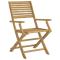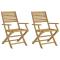 Chaises pliables de jardin lot de 2 bois massif d'acaciaCes chaises de jardin en bois sont fabriquées en bois d'acacia massif et ont un design élégant. Elles seront un excellent choix pour dîner en plein air dans le jardin ou sur le patio. Bois d'acacia massif : le siège de jardin est fabriqué en bois d'acacia massif pour plus de robustesse et de stabilité. Le bois d'acacia massif est un beau matériau naturel. Le bois d'acacia a un grain droit et les noeuds donnent au matériau son aspect caractéristique et rustique. Une expérience d'assise confortable : dotée d'accoudoirs et d'un dossier, la chaise d'extérieur vous offre un confort optimal. Design à lattes : le design à lattes de la chaise de jardin en bois empêche l'accumulation de l'eau, ce qui permet de garder le siège au sec et d'éviter un pourrissement inutile. Design pliable : la table peut être facilement pliée lorsqu'elle n'est pas utilisée pour faciliter le rangement et le transport. Bon à savoir : Pour que vos meubles d'extérieur restent beaux, nous vous recommandons de les protéger avec une housse imperméable. Maximum 110 kg par siège. ,