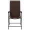 Chaises pliables de jardin lot de 2 marron résine tresséeCes chaises en résine tressée ont un design élégant. Elles seront un excellent choix pour dîner en plein air dans le jardin ou sur le patio. Matériau durable : la résine tressée, également connue sous le nom de poly rotin, est un matériau synthétique solide et nécessitant peu d'entretien qui ressemble au rotin naturel. Il est léger, facile à nettoyer et couramment utilisé pour les meubles d'extérieur en raison de sa durabilité et de ses propriétés de résistance aux intempéries.Réglable en hauteur : vous pouvez facilement régler la hauteur du siège à votre convenance à l'aide du levier pratique situé sous le siège.Une expérience d'assise confortable : dotée d'accoudoirs et d'un dossier, la chaise d'extérieur vous offre un confort optimal.Design pliable : la table peut être facilement pliée lorsqu'elle n'est pas utilisée pour faciliter le rangement et le transport. Bon à savoir :Pour que vos meubles d'extérieur restent beaux, nous vous recommandons de les protéger avec une housse imperméable. Maximum 110 kg par siège.