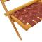 Chaises pliables de jardin lot de 2 et table rouge bois massifCes chaises de jardin pliantes complèteront à merveille votre jardin, patio ou terrasse, vous permettant de passer des moments agréables avec votre famille ou vos amis. Bois d'acacia massif : Le bois d'acacia massif est un beau matériau naturel. Le bois d'acacia a un grain droit et les noeuds lui confèrent un aspect rustique caractéristique. Le siège de jardin est fabriqué en bois d'acacia massif, ce qui lui confère robustesse et stabilité. Matériau durable : la fibre d'oléfine, également connue sous le nom de fibre de polypropylène (PP), est confortable, solide, durable et très résistante à la décoloration par la lumière du soleil. Design pliable : la chaise de patio peut être facilement pliée lorsqu'elle n'est pas utilisée, pour un rangement et un transport faciles. Dessus de table robuste : le dessus à lattes de la table d'extérieur est conçu pour faciliter l'écoulement de l'eau et offre également un excellent support pour vos boissons, collations, paniers de fruits et décorations préférées. Conception de sangles : l'assise et le dossier de la chaise de jardin sont conçus avec des sangles pour plus de confort, d'élégance et de respirabilité. Bon à savoir : Pour que vos meubles d'extérieur restent beaux, nous vous recommandons de les protéger avec une housse imperméable. Maximum 110 kg par siège. ,
