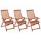 Chaises pliables de jardin lot de 3 Bois d'acacia solideCet ensemble de 3 chaises de jardin en bois est conçu pour ajouter un look vintage à n'importe quel dîner dans votre jardin, sur la terrasse ou le patio. La chaise pliable est fabriquée en bois d'acacia massif, un bois dur tropical, ce qui la rend stable et durable. La surface à finition à l'huile est facile à nettoyer avec un chiffon humide. La chaise de salle à manger peut être réglée à 5 positions, vous offrant un confort d'assise optimal. Elle peut également être pliée pour économiser de l'espace lorsqu'elle n'est pas utilisée. La livraison comprend le matériel jaune galvanisé. Maximum 110 kg par siège.