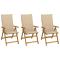 Chaises pliables de jardin lot de 3 avec coussins Bois d'acaciaCet ensemble de chaises de jardin en bois avec coussins est conçu pour ajouter un look vintage à tout dîner dans votre jardin, sur votre terrasse ou patio. La chaise pliable est en bois d'acacia massif, un bois dur tropical, ce qui la rend stable et durable. La surface à finition à huile est facile à nettoyer avec un chiffon humide. La chaise de salle à manger peut être ajustée en 5 positions, vous offrant un confort d'assise optimal. Elle peut également être pliée pour économiser de l'espace lorsqu'elle n'est pas utilisée. De plus, les coussins fournis offrent un confort supplémentaire lors de la détente ou du dîner. Chaque coussin comporte deux jeux de cordes des deux côtés et une sangle élastique derrière le dossier pour le fixer fermement à la chaise. La livraison comprend le matériel jaune galvanisé. Maximum 110 kg par siège. ,