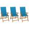 Chaises pliables de jardin lot de 3 avec coussins Bois d'acaciaCet ensemble de chaises de jardin en bois avec coussins est conçu pour ajouter un look vintage à tout dîner dans votre jardin, sur votre terrasse ou patio. La chaise pliable est en bois d'acacia massif, un bois dur tropical, ce qui la rend stable et durable. La surface à finition à huile est facile à nettoyer avec un chiffon humide. La chaise de salle à manger peut être ajustée en 5 positions, vous offrant un confort d'assise optimal. Elle peut également être pliée pour économiser de l'espace lorsqu'elle n'est pas utilisée. De plus, les coussins fournis offrent un confort supplémentaire lors de la détente ou du dîner. Chaque coussin comporte deux jeux de cordes des deux côtés et une sangle élastique derrière le dossier pour le fixer fermement à la chaise. La livraison comprend le matériel jaune galvanisé. Maximum 110 kg par siège. ,