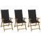 Chaises pliables de jardin lot de 3 avec coussins Bois d'acaciaCet ensemble de chaises de jardin en bois avec coussins est conçu pour ajouter un look vintage à tout dîner dans votre jardin, sur votre terrasse ou patio. La chaise pliable est en bois d'acacia massif, un bois dur tropical, ce qui la rend stable et durable. La surface à finition à huile est facile à nettoyer avec un chiffon humide. La chaise de salle à manger peut être ajustée en 5 positions, vous offrant un confort d'assise optimal. Elle peut également être pliée pour économiser de l'espace lorsqu'elle n'est pas utilisée. De plus, les coussins fournis offrent un confort supplémentaire lors de la détente ou du dîner. Chaque coussin comporte deux jeux de cordes des deux côtés et une sangle élastique derrière le dossier pour le fixer fermement à la chaise. La livraison comprend le matériel jaune galvanisé. Maximum 110 kg par siège. ,