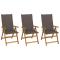 Chaises pliables de jardin lot de 3 avec coussins Bois d'acaciaCet ensemble de chaises de jardin en bois avec coussins est conçu pour ajouter un look vintage à tout dîner dans votre jardin, sur votre terrasse ou patio. La chaise pliable est en bois d'acacia massif, un bois dur tropical, ce qui la rend stable et durable. La surface à finition à huile est facile à nettoyer avec un chiffon humide. La chaise de salle à manger peut être ajustée en 5 positions, vous offrant un confort d'assise optimal. Elle peut également être pliée pour économiser de l'espace lorsqu'elle n'est pas utilisée. De plus, les coussins fournis offrent un confort supplémentaire lors de la détente ou du dîner. Chaque coussin comporte deux jeux de cordes des deux côtés et une sangle élastique derrière le dossier pour le fixer fermement à la chaise. La livraison comprend le matériel jaune galvanisé. Maximum 110 kg par siège.