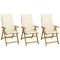 Chaises pliables de jardin lot de 3 avec coussins Bois d'acaciaCet ensemble de chaises de jardin en bois avec coussins est conçu pour ajouter un look vintage à tout dîner dans votre jardin, sur votre terrasse ou patio. La chaise pliable est en bois d'acacia massif, un bois dur tropical, ce qui la rend stable et durable. La surface à finition à huile est facile à nettoyer avec un chiffon humide. La chaise de salle à manger peut être ajustée en 5 positions, vous offrant un confort d'assise optimal. Elle peut également être pliée pour économiser de l'espace lorsqu'elle n'est pas utilisée. De plus, les coussins fournis offrent un confort supplémentaire lors de la détente ou du dîner. Chaque coussin comporte deux jeux de cordes des deux côtés et une sangle élastique derrière le dossier pour le fixer fermement à la chaise. La livraison comprend le matériel jaune galvanisé. Maximum 110 kg par siège. ,