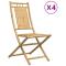 Chaises pliables de jardin lot de 4 46x66x99 cm bambouCes chaises pliables de jardin en bambou ont un design élégant et seront un excellent choix pour dîner en plein air dans le jardin ou sur le patio. Durable et durable : en tant que matériau naturel, le bambou offre une bonne respirabilité et une faible odeur. Ces qualités rendent la chaise pliable en bambou résistant à l'eau et durable. Design pliable : la chaise à manger peut être facilement pliée lorsqu'elle n'est pas utilisée, pour un rangement et un transport faciles. Une expérience d'assise confortable : dotée d'un dossier, la chaise d'extérieur vous offre un confort optimal. Bon à savoir : Pour que vos meubles d'extérieur restent beaux, nous vous recommandons de les protéger avec une housse imperméable. Maximum 110 kg par siège. ,