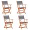 Chaises pliables de jardin lot de 4 Gris Eucalyptus textilèneCet ensemble de 4 fauteuils pliables en bois est un beau complément à votre mobilier d'extérieur existant. Ces fauteuils sont fabriqués en bois d'eucalyptus massif, ce qui renforce la durabilité et la stabilité, et les rend adaptés au mobilier d'extérieur. Ils ont également une finition à l'huile naturelle, ce qui leur donne un aspect assez lisse, résistant aux intempéries et facile à entretenir. L'assise et le dossier en textilène respirant et doux au toucher offrent un confort ultime lors de vos moments de détente. Les accoudoirs offrent un soutien supplémentaire. Les chaises sont pliables lorsqu'elles ne sont pas utilisées pour gagner de la place. Ces chaises sont également faciles à assembler. Maximum 110 kg par siège.