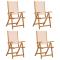 Chaises pliables de jardin lot de 4 bois d'acacia et textilèneCes chaises de jardin pliantes complèteront à merveille votre jardin, patio ou terrasse, vous permettant de passer des moments agréables avec votre famille ou vos amis. Robuste et stable : le bois d'acacia massif est connu pour sa solidité et sa durabilité. Ses couleurs variées et ses grains uniques lui confèrent un aspect attrayant. Sa stabilité et sa résistance aux intempéries en font un matériau idéal pour la fabrication de meubles d'intérieur et d'extérieur. Durable et longue durée de vie : le tissu textilène est apprécié pour sa durabilité, résistance à l'eau et à la décoloration, facilité d'entretien et protection contre les rayons UV et la moisissure, ce qui en fait un choix idéal pour le meuble d'extérieur et les structures d'ombrage. Facile à transporter et à ranger : la chaise est pliable et compacte, ce qui permet de le ranger et de le transporter facilement. C'est un choix idéal pour les activités de plein air. Dossier réglables : cette chaise de jardin est dotée d'un dossier à 5 positions réglables, ce qui vous permet de trouver facilement la position la plus confortable et la plus appropriée pour la détente. Bon à savoir : Pour que vos meubles d'extérieur restent beaux, nous vous recommandons de les protéger avec une housse imperméable. Maximum 110 kg par siège. ,