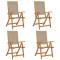 Chaises pliables de jardin lot de 4 bois d'acacia et textilèneCes chaises de jardin pliantes complèteront à merveille votre jardin, patio ou terrasse, vous permettant de passer des moments agréables avec votre famille ou vos amis. Robuste et stable : le bois d'acacia massif est connu pour sa solidité et sa durabilité. Ses couleurs variées et ses grains uniques lui confèrent un aspect attrayant. Sa stabilité et sa résistance aux intempéries en font un matériau idéal pour la fabrication de meubles d'intérieur et d'extérieur. Durable et longue durée de vie : le tissu textilène est apprécié pour sa durabilité, résistance à l'eau et à la décoloration, facilité d'entretien et protection contre les rayons UV et la moisissure, ce qui en fait un choix idéal pour le meuble d'extérieur et les structures d'ombrage. Facile à transporter et à ranger : la chaise est pliable et compacte, ce qui permet de le ranger et de le transporter facilement. C'est un choix idéal pour les activités de plein air. Dossier réglables : cette chaise de jardin est dotée d'un dossier à 5 positions réglables, ce qui vous permet de trouver facilement la position la plus confortable et la plus appropriée pour la détente. Bon à savoir : Pour que vos meubles d'extérieur restent beaux, nous vous recommandons de les protéger avec une housse imperméable. Maximum 110 kg par siège. ,