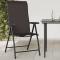 Chaises pliables de jardin lot de 4 café noir résine tresséeCes chaises en résine tressée ont un design élégant. Elles seront un excellent choix pour dîner en plein air dans le jardin ou sur le patio. Matériau durable : la résine tressée, également connue sous le nom de poly rotin, est un matériau synthétique solide et nécessitant peu d'entretien qui ressemble au rotin naturel. Il est léger, facile à nettoyer et couramment utilisé pour les meubles d'extérieur en raison de sa durabilité et de ses propriétés de résistance aux intempéries.Réglable en hauteur : vous pouvez facilement régler la hauteur du siège à votre convenance à l'aide du levier pratique situé sous le siège.Une expérience d'assise confortable : dotée d'accoudoirs et d'un dossier, la chaise d'extérieur vous offre un confort optimal.Design pliable : la table peut être facilement pliée lorsqu'elle n'est pas utilisée pour faciliter le rangement et le transport. Bon à savoir :Pour que vos meubles d'extérieur restent beaux, nous vous recommandons de les protéger avec une housse imperméable. Maximum 110 kg par siège.