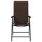 Chaises pliables de jardin lot de 4 marron résine tresséeCes chaises en résine tressée ont un design élégant. Elles seront un excellent choix pour dîner en plein air dans le jardin ou sur le patio. Matériau durable : la résine tressée, également connue sous le nom de poly rotin, est un matériau synthétique solide et nécessitant peu d'entretien qui ressemble au rotin naturel. Il est léger, facile à nettoyer et couramment utilisé pour les meubles d'extérieur en raison de sa durabilité et de ses propriétés de résistance aux intempéries. Réglable en hauteur : vous pouvez facilement régler la hauteur du siège à votre convenance à l'aide du levier pratique situé sous le siège. Une expérience d'assise confortable : dotée d'accoudoirs et d'un dossier, la chaise d'extérieur vous offre un confort optimal. Design pliable : la table peut être facilement pliée lorsqu'elle n'est pas utilisée pour faciliter le rangement et le transport. Bon à savoir : Pour que vos meubles d'extérieur restent beaux, nous vous recommandons de les protéger avec une housse imperméable. Maximum 110 kg par siège. ,