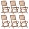 Chaises pliables de jardin lot de 6 Bois d'acacia solideVous pourrez vous détendre et discuter en famille ou profiter d'un dîner tranquille sur cet ensemble de chaises de jardin pliables en bois. Ces chaises d'extérieur, fabriquées en bois d'acacia massif, sont solides et stables. Le bois d'acacia massif a la force de soutenir le poids et résiste également à l'usure du temps. Ces chaises de salle à manger sont donc destinées à un usage à long terme, offrant des années de détente. Le siège et le dossier à lattes sont ergonomiques et offrent un confort supplémentaire. Grâce au design pliable, ces chaises sont peu encombrantes lorsqu'elles ne sont pas utilisées. Maximum 110 kg par siège.