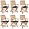 Chaises pliables de jardin lot de 6 avec coussins Bois d'acaciaCes chaises pliables en bois d'acacia massif avec coussins sont un endroit idéal pour vous détendre et profiter du soleil dans le jardin ou sur le patio. Ces chaises de jardin sont fabriquées en bois d'acacia massif, ce qui les rend solides et stables. Le bois d'acacia massif a la force de soutenir le poids et résiste à l'usure du temps. Ainsi, ces chaises d'extérieur offrent des années de détente. De plus, les chaises peuvent être pliées pour économiser de l'espace lorsqu'elles ne sont pas utilisées. Les coussins inclus ajoutent un confort supplémentaire. Chaque coussin comporte deux ensembles de cordes pour le fixer solidement sur la chaise. Remarque : Afin de prolonger la durée de vie de vos meubles d'extérieur, nous vous recommandons de les nettoyer régulièrement et de ne pas les laisser à l'extérieur sans protection inutilement.Nettoyage : Utiliser une solution savonneuse douceStockage : Si possible, stockez dans un endroit frais et sec à l'intérieur. Si le produit est stocké à l'extérieur, protégez-le avec une housse imperméable. Essuyez et séchez l'excès d'eau ou de neige des surfaces planes après la pluie ou une chute de neige. Permettez une circulation d'air suffisante afin d'éviter les dommages liés à l'humidité. Maximum 110 kg par siège.