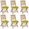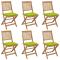 Chaises pliables de jardin lot de 6 avec coussins Bois d'acaciaCes chaises pliables en bois d'acacia massif avec coussins sont un endroit idéal pour vous détendre et profiter du soleil dans le jardin ou sur le patio. Ces chaises de jardin sont fabriquées en bois d'acacia massif, ce qui les rend solides et stables. Le bois d'acacia massif a la force de soutenir le poids et résiste à l'usure du temps. Ainsi, ces chaises d'extérieur offrent des années de détente. De plus, les chaises peuvent être pliées pour économiser de l'espace lorsqu'elles ne sont pas utilisées. Les coussins inclus ajoutent un confort supplémentaire. Chaque coussin comporte deux ensembles de cordes pour le fixer solidement sur la chaise. Remarque : Afin de prolonger la durée de vie de vos meubles d'extérieur, nous vous recommandons de les nettoyer régulièrement et de ne pas les laisser à l'extérieur sans protection inutilement.Nettoyage : Utiliser une solution savonneuse douceStockage : Si possible, stockez dans un endroit frais et sec à l'intérieur. Si le produit est stocké à l'extérieur, protégez-le avec une housse imperméable. Essuyez et séchez l'excès d'eau ou de neige des surfaces planes après la pluie ou une chute de neige. Permettez une circulation d'air suffisante afin d'éviter les dommages liés à l'humidité. Maximum 110 kg par siège.