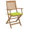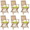 Chaises pliables de jardin lot de 6 avec coussins Bois d'acaciaCes chaises pliables en bois d'acacia massif avec coussins sont un endroit idéal pour vous détendre et profiter du soleil dans le jardin ou sur le patio. Ces chaises de jardin sont fabriquées en bois d'acacia massif, ce qui les rend solides et stables. Le bois d'acacia massif a la force de soutenir le poids et résiste à l'usure du temps. Ainsi, ces chaises d'extérieur offrent des années de détente. De plus, les chaises peuvent être pliées pour économiser de l'espace lorsqu'elles ne sont pas utilisées. Les coussins inclus ajoutent un confort supplémentaire. Chaque coussin comporte deux ensembles de cordes pour le fixer solidement sur la chaise. Remarque : Afin de prolonger la durée de vie de vos meubles d'extérieur, nous vous recommandons de les nettoyer régulièrement et de ne pas les laisser à l'extérieur sans protection inutilement.Nettoyage : Utiliser une solution savonneuse douceStockage : Si possible, stockez dans un endroit frais et sec à l'intérieur. Si le produit est stocké à l'extérieur, protégez-le avec une housse imperméable. Essuyez et séchez l'excès d'eau ou de neige des surfaces planes après la pluie ou une chute de neige. Permettez une circulation d'air suffisante afin d'éviter les dommages liés à l'humidité. Maximum 110 kg par siège.