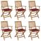 Chaises pliables de jardin lot de 6 avec coussins Bois d'acaciaCes chaises pliables en bois d'acacia massif avec coussins sont un endroit idéal pour vous détendre et profiter du soleil dans le jardin ou sur le patio. Ces chaises de jardin sont fabriquées en bois d'acacia massif, ce qui les rend solides et stables. Le bois d'acacia massif a la force de soutenir le poids et résiste à l'usure du temps. Ainsi, ces chaises d'extérieur offrent des années de détente. De plus, les chaises peuvent être pliées pour économiser de l'espace lorsqu'elles ne sont pas utilisées. Les coussins inclus ajoutent un confort supplémentaire. Chaque coussin comporte deux ensembles de cordes pour le fixer solidement sur la chaise. Remarque : Afin de prolonger la durée de vie de vos meubles d'extérieur, nous vous recommandons de les nettoyer régulièrement et de ne pas les laisser à l'extérieur sans protection inutilement.Nettoyage : Utiliser une solution savonneuse douceStockage : Si possible, stockez dans un endroit frais et sec à l'intérieur. Si le produit est stocké à l'extérieur, protégez-le avec une housse imperméable. Essuyez et séchez l'excès d'eau ou de neige des surfaces planes après la pluie ou une chute de neige. Permettez une circulation d'air suffisante afin d'éviter les dommages liés à l'humidité. Maximum 110 kg par siège.
