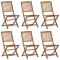 Chaises pliables de jardin lot de 6 avec coussins Bois d'acaciaCes chaises pliables en bois d'acacia massif avec coussins sont un endroit idéal pour vous détendre et profiter du soleil dans le jardin ou sur le patio. Ces chaises de jardin sont fabriquées en bois d'acacia massif, ce qui les rend solides et stables. Le bois d'acacia massif a la force de soutenir le poids et résiste à l'usure du temps. Ainsi, ces chaises d'extérieur offrent des années de détente. De plus, les chaises peuvent être pliées pour économiser de l'espace lorsqu'elles ne sont pas utilisées. Les coussins inclus ajoutent un confort supplémentaire. Chaque coussin comporte deux ensembles de cordes pour le fixer solidement sur la chaise. Remarque : Afin de prolonger la durée de vie de vos meubles d'extérieur, nous vous recommandons de les nettoyer régulièrement et de ne pas les laisser à l'extérieur sans protection inutilement. Nettoyage : Utiliser une solution savonneuse douce Stockage : Si possible, stockez dans un endroit frais et sec à l'intérieur. Si le produit est stocké à l'extérieur, protégez-le avec une housse imperméable. Essuyez et séchez l'excès d'eau ou de neige des surfaces planes après la pluie ou une chute de neige. Permettez une circulation d'air suffisante afin d'éviter les dommages liés à l'humidité. Maximum 110 kg par siège. ,
