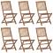 Chaises pliables de jardin lot de 6 avec coussins Bois d'acaciaCes chaises pliables en bois d'acacia massif avec coussins sont un endroit idéal pour vous détendre et profiter du soleil dans le jardin ou sur le patio. Ces chaises de jardin sont fabriquées en bois d'acacia massif, ce qui les rend solides et stables. Le bois d'acacia massif a la force de soutenir le poids et résiste à l'usure du temps. Ainsi, ces chaises d'extérieur offrent des années de détente. De plus, les chaises peuvent être pliées pour économiser de l'espace lorsqu'elles ne sont pas utilisées. Les coussins inclus ajoutent un confort supplémentaire. Chaque coussin comporte deux ensembles de cordes pour le fixer solidement sur la chaise. Remarque : Afin de prolonger la durée de vie de vos meubles d'extérieur, nous vous recommandons de les nettoyer régulièrement et de ne pas les laisser à l'extérieur sans protection inutilement.Nettoyage : Utiliser une solution savonneuse douceStockage : Si possible, stockez dans un endroit frais et sec à l'intérieur. Si le produit est stocké à l'extérieur, protégez-le avec une housse imperméable. Essuyez et séchez l'excès d'eau ou de neige des surfaces planes après la pluie ou une chute de neige. Permettez une circulation d'air suffisante afin d'éviter les dommages liés à l'humidité. Maximum 110 kg par siège.
