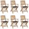 Chaises pliables de jardin lot de 6 avec coussins Bois d'acaciaCes chaises pliables en bois d'acacia massif avec coussins sont un endroit idéal pour vous détendre et profiter du soleil dans le jardin ou sur le patio. Ces chaises de jardin sont fabriquées en bois d'acacia massif, ce qui les rend solides et stables. Le bois d'acacia massif a la force de soutenir le poids et résiste à l'usure du temps. Ainsi, ces chaises d'extérieur offrent des années de détente. De plus, les chaises peuvent être pliées pour économiser de l'espace lorsqu'elles ne sont pas utilisées. Les coussins inclus ajoutent un confort supplémentaire. Chaque coussin comporte deux ensembles de cordes pour le fixer solidement sur la chaise. Remarque : Afin de prolonger la durée de vie de vos meubles d'extérieur, nous vous recommandons de les nettoyer régulièrement et de ne pas les laisser à l'extérieur sans protection inutilement.Nettoyage : Utiliser une solution savonneuse douceStockage : Si possible, stockez dans un endroit frais et sec à l'intérieur. Si le produit est stocké à l'extérieur, protégez-le avec une housse imperméable. Essuyez et séchez l'excès d'eau ou de neige des surfaces planes après la pluie ou une chute de neige. Permettez une circulation d'air suffisante afin d'éviter les dommages liés à l'humidité. Maximum 110 kg par siège.