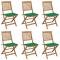 Chaises pliables de jardin lot de 6 avec coussins Bois d'acaciaCes chaises pliables en bois d'acacia massif avec coussins sont un endroit idéal pour vous détendre et profiter du soleil dans le jardin ou sur le patio. Ces chaises de jardin sont fabriquées en bois d'acacia massif, ce qui les rend solides et stables. Le bois d'acacia massif a la force de soutenir le poids et résiste à l'usure du temps. Ainsi, ces chaises d'extérieur offrent des années de détente. De plus, les chaises peuvent être pliées pour économiser de l'espace lorsqu'elles ne sont pas utilisées. Les coussins inclus ajoutent un confort supplémentaire. Chaque coussin comporte deux ensembles de cordes pour le fixer solidement sur la chaise. Remarque : Afin de prolonger la durée de vie de vos meubles d'extérieur, nous vous recommandons de les nettoyer régulièrement et de ne pas les laisser à l'extérieur sans protection inutilement. Nettoyage : Utiliser une solution savonneuse douce Stockage : Si possible, stockez dans un endroit frais et sec à l'intérieur. Si le produit est stocké à l'extérieur, protégez-le avec une housse imperméable. Essuyez et séchez l'excès d'eau ou de neige des surfaces planes après la pluie ou une chute de neige. Permettez une circulation d'air suffisante afin d'éviter les dommages liés à l'humidité. Maximum 110 kg par siège.