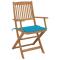 Chaises pliables de jardin lot de 6 avec coussins Bois d'acaciaCes chaises pliables en bois d'acacia massif avec coussins sont un endroit idéal pour vous détendre et profiter du soleil dans le jardin ou sur le patio. Ces chaises de jardin sont fabriquées en bois d'acacia massif, ce qui les rend solides et stables. Le bois d'acacia massif a la force de soutenir le poids et résiste à l'usure du temps. Ainsi, ces chaises d'extérieur offrent des années de détente. De plus, les chaises peuvent être pliées pour économiser de l'espace lorsqu'elles ne sont pas utilisées. Les coussins inclus ajoutent un confort supplémentaire. Chaque coussin comporte deux ensembles de cordes pour le fixer solidement sur la chaise. Remarque : Afin de prolonger la durée de vie de vos meubles d'extérieur, nous vous recommandons de les nettoyer régulièrement et de ne pas les laisser à l'extérieur sans protection inutilement. Nettoyage : Utiliser une solution savonneuse douce Stockage : Si possible, stockez dans un endroit frais et sec à l'intérieur. Si le produit est stocké à l'extérieur, protégez-le avec une housse imperméable. Essuyez et séchez l'excès d'eau ou de neige des surfaces planes après la pluie ou une chute de neige. Permettez une circulation d'air suffisante afin d'éviter les dommages liés à l'humidité. Maximum 110 kg par siège.