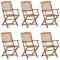 Chaises pliables de jardin lot de 6 avec coussins Bois d'acaciaCes chaises pliables en bois d'acacia massif avec coussins sont un endroit idéal pour vous détendre et profiter du soleil dans le jardin ou sur le patio. Ces chaises de jardin sont fabriquées en bois d'acacia massif, ce qui les rend solides et stables. Le bois d'acacia massif a la force de soutenir le poids et résiste à l'usure du temps. Ainsi, ces chaises d'extérieur offrent des années de détente. De plus, les chaises peuvent être pliées pour économiser de l'espace lorsqu'elles ne sont pas utilisées. Les coussins inclus ajoutent un confort supplémentaire. Chaque coussin comporte deux ensembles de cordes pour le fixer solidement sur la chaise. Maximum 110 kg par siège.