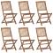 Chaises pliables de jardin lot de 6 avec coussins Bois d'acaciaCes chaises pliables en bois d'acacia massif avec coussins sont un endroit idéal pour vous détendre et profiter du soleil dans le jardin ou sur le patio. Ces chaises de jardin sont fabriquées en bois d'acacia massif, ce qui les rend solides et stables. Le bois d'acacia massif a la force de soutenir le poids et résiste à l'usure du temps. Ainsi, ces chaises d'extérieur offrent des années de détente. De plus, les chaises peuvent être pliées pour économiser de l'espace lorsqu'elles ne sont pas utilisées. Les coussins inclus ajoutent un confort supplémentaire. Chaque coussin comporte deux ensembles de cordes pour le fixer solidement sur la chaise. Maximum 110 kg par siège.