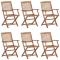 Chaises pliables de jardin lot de 6 avec coussins Bois d'acaciaCes chaises pliables en bois d'acacia massif avec coussins sont un endroit idéal pour vous détendre et profiter du soleil dans le jardin ou sur le patio. Ces chaises de jardin sont fabriquées en bois d'acacia massif, ce qui les rend solides et stables. Le bois d'acacia massif a la force de soutenir le poids et résiste à l'usure du temps. Ainsi, ces chaises d'extérieur offrent des années de détente. De plus, les chaises peuvent être pliées pour économiser de l'espace lorsqu'elles ne sont pas utilisées. Les coussins inclus ajoutent un confort supplémentaire. Chaque coussin comporte deux ensembles de cordes pour le fixer solidement sur la chaise. Maximum 110 kg par siège.