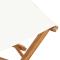 Chaises pliables lot de 2 Bois teck solide et tissu Blanc crèmeCette chaise pliable en bois au design saisissant ajoute une touche de charme rustique à votre jardin ou à votre patio. Fabriquée en bois dur de teck extrêmement durable, cette pièce de meuble en teck a été chevronnée, séchée au four puis finement poncée pour lui donner un aspect très lisse. Le bois de teck est connu pour sa résistance exceptionnelle aux intempéries, ce qui le rend bien plus adapté aux meubles de jardin que tout autre type de bois. Le bois de teck est le choix idéal si vous souhaitez acheter un meuble de jardin durable. Le siège en tissu ajoute au confort d'assise. Elle peut être pliée pour un rangement facile lorsqu'elle n'est pas utilisée. Maximum 110 kg par siège. ,