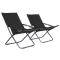 Chaises pliables de plage lot de 2 Tissu NoirNotre ensemble de chaises de plage est un excellent choix à emporter à la plage, au camping, dans le jardin, etc. Chaque chaise longue se compose d'un cadre robuste en acier enduit de poudre et de tissu oxford 600D résistant à l'usure, ce qui la rend très résistante et durable. La chaise de jardin peut être inclinée sur 3 positions et est pliable pour un rangement facile et peu encombrant. La livraison comprend 2 chaises de plage pliables. Maximum 110 kg par siège. Soyez conscient du risque de feux ouverts et d'autres sources de forte chaleur à proximité du produit. ,