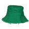Vente grand bob vert homme et femme en tissu coton ligne prestige et tendance modèle Green Myxjack de marque Nyls Création, large bob denim vert tendance monté d'un bandeau avec réglage de taille, ficelle de menton ajustable, doublure unie, bob baroudeur classe pas cher avec visière surpiquée effilochée.