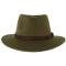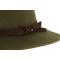 Chapeau fedora homme et femme laine crushable sélection Léon Montane référence Mac L Green, chapeau vert kaki imperméable confectionné enItalie, forme tendance, agrémenté d'une ceinture cuir daim marron et bande intérieure matelassé confort. Qualité tradition.