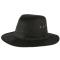 Chapeau coton huilé noir homme et femme esprit Brousse référence Travys Black par Léon Montane, chapeau noir imperméable en coton Wax, doublure noire et toile enduite Finistère, fabrication européenne.