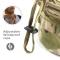 Il y a une sangle en tissu sur le bord, qui peut être insérée dans les branches et les feuilles, qui peuvent être bien camouflées dans la jungle.