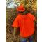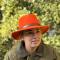 Chapeau en feutre de laine orange, idéal pour les battues au grand gibier. Unisexe, imperméable et écrasable, avec ceinture en cuir. Disponible en M, L et XL.