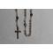 Ancien chapelet en argent doré, poinçon français au crabe perles de verre nacré diamètre des perles : 3,5 mm dimensions de la croix : 2,6 x 1,4 cm longueur totale : 35 cm avec écrin en cuir bon état