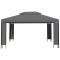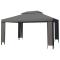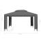 Chapiteau Anthracite 300 x 400 cmCette tonnelle spacieuse sera un accessoire élégant à votre espace de vie extérieur tout en gardant votre famille et vos invités frais et ombragés les jours ensoleillés. L'auvent ventilé empêchera le soleil et la pluie de gâcher le plaisir des réunions de famille, des barbecues, des pique-niques de l'après-midi et des fêtes d'anniversaire. La tente de fête a une construction en acier robuste et un toit en polyester. REMARQUE : ce produit ne doit JAMAIS être utilisé par mauvais temps, tel que vent fort, pluie abondante, neige, tempête, etc. Tenez les enfants et les animaux domestiques à l'écart de la zone d'assemblage jusqu'à ce que le travail soit terminé. Certaines pièces peuvent présenter des arêtes vives, portez des gants de protection si nécessaire. Le gazebo doit être positionné et fixé uniquement sur une surface plane et horizontale. N'essayez pas d'assembler le gazebo dans des conditions venteuses ou humides. Ne placez pas votre gazebo dans une zone exposée à un vent excessif. Si vous utilisez des outils électriques ou une échelle, suivez toujours les instructions de sécurité du fabricant pour éviter les blessures. NE PAS utiliser de flammes nues dans le gazebo ou à proximité du pavillon. Les objets chauds tels que les grils récemment utilisés, les chalumeaux, etc. ne doivent pas être entreposés dans le pavillon de jardin. Fixez le gazebo à l'aide des piquets fournis.