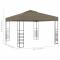 Chapiteau de jardin 3x3 m Taupe 180 g/m²Ce chapiteau sera idéal pour tous les événements en plein air, comme les petits réunions, les mariages, les fêtes barbecue, le camping et ainsi de suite. Vous pouvez également l'installer dans votre cour comme un large et joli parasol de repos pour votre famille et vos invités. Le cadre est solide et stable grâce à sa construction entièrement en acier et le toit est fait de 100 % polyester qui a reçu un revêtement de polyamide pour vous protéger des rayons UV nocifs et aussi de la pluie. Son design élégant à double orifice de ventilation permet également une meilleure circulation de l'air et un confort accru. REMARQUE : ce produit ne doit JAMAIS être utilisé par mauvais temps, tel que vent fort, pluie abondante, neige, tempête, etc. Tenez les enfants et les animaux domestiques à l'écart de la zone d'assemblage jusqu'à ce que le travail soit terminé. Certaines pièces peuvent présenter des arêtes vives, portez des gants de protection si nécessaire. Le gazebo doit être positionné et fixé uniquement sur une surface plane et horizontale. N'essayez pas d'assembler le gazebo dans des conditions venteuses ou humides. Ne placez pas votre gazebo dans une zone exposée à un vent excessif. Si vous utilisez des outils électriques ou une échelle, suivez toujours les instructions de sécurité du fabricant pour éviter les blessures. NE PAS utiliser de flammes nues dans le gazebo ou à proximité du pavillon. Les objets chauds tels que les grils récemment utilisés, les chalumeaux, etc. ne doivent pas être entreposés dans le pavillon de jardin. Fixez le gazebo à l'aide des piquets fournis.