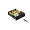 Le Chargeur Intelligent Ci4 de Nitecore prend en charge divers types de batteries, y compris 18650 et AA, avec quatre emplacements de charge indépendants. Il ajuste automatiquement la charge pour chaque batterie, garantissant sécurité et efficacité. Le boîtier en PC ignifuge assure une utilisation durable et sécurisée.