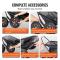 Pneus amortisseurs pneumatiques : Quatre pneus pneumatiques offrent de meilleures performances de charge, assurent une répartition uniforme de la charge et une plus grande stabilité, réduisent efficacement les chocs et les vibrations et assurent un mouvement fluide même sur les routes de montagne accidentées transportant de lourdes charges, ce qui en fait d'excellents compagnons de chasse en plein air. De plus, la goupille d'attelage du pneu est dotée d'une conception à anneau de verrouillage, offrant une meilleure sécurité par rapport aux connexions à crochet droit conventionnelles, assurant la stabilité du chariot et empêchant le démontage.