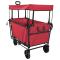 Chariot à Main Pliable Rouge 105 x 56,5 x 116 cm Tissu OxfordCe chariot à main pliable est l'outil qu'il vous faut pour tous vos besoins de transport, alliant praticité et style. Avec son look moderne et minimaliste, il est parfait pour un usage intérieur comme extérieur, convenant à tout le monde. Son design compact et élégant se range facilement, tout en étant assez solide pour porter de lourdes charges sur tous types de terrains. Il est idéal pour déplacer des choses dans vos locaux ou chez vous, c'est un allié fiable qui se fond bien dans son environnement. Matériau en Tissu Oxford : Le chariot pliable est conçu avec un grand compartiment en tissu Oxford, super résistant à l'usure et durable. Ce tissu imperméable résiste aux fuites et éclaboussures, tout en restant joli même dans des conditions difficiles. Composants Détachables : Avec un panier en tissu amovible et lavable, ce chariot garantit une propreté optimale. Son auvent protège des intempéries, et le panneau latéral zippé assure un accès facile et sécurisé. Son réglage manuel permet d'ajuster sans mécanique. Fonctionnalité Améliorée : Son guidon ajustable à plusieurs angles facilite la manoeuvre dans des espaces serrés. Les roues pivotantes larges et silencieuses à 360°, parfaites pour tout terrain, assurent un déplacement fluide. En plus, les freins sur les deux roues avant renforcent la sécurité. Utilisation Polyvalente : Ce chariot est parfait pour vos courses, du jardinage ou même pour la plage. Son design élégant s'intègre bien à un style de vie moderne sans désordre, tout en répondant à divers besoins sans sacrifier la praticité. Guide d'Entretien : Pour garder la qualité de votre chariot, évitez les nettoyants agressifs. Avec son cadre en métal solide et son revêtement PVC, un simple essuyage suffit pour qu'il reste en bon état, même en usage régulier. Conservez ce manuel d'instructions pour toute consultation ultérieure. La charge maximale admissible est de 150 kg. Ne dépassez pas cette limite. Serrez fermement tous les boulons, vis et boutons avant utilisation. Lors du montage initial, ne serrez pas les fixations pendant le vissage. Une fois le montage terminé, vous pouvez serrer fermement les fixations et vous assurer qu'elles ne bougent pas. Attention : certaines pièces sont lourdes et présentent des arêtes vives. Si des pièces sont manquantes, cassées, endommagées ou usées, cessez d'utiliser ce produit jusqu'à ce que les pièces réparées ou remplacées soient installées. N'utilisez pas ce produit à des fins autres que celles prévues, car cela pourrait annuler la garantie. Suivez toujours les instructions du fabricant fournies dans ce manuel pour une utilisation correcte. Ce produit n'est pas adapté au transport d'enfants ou d'animaux.