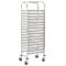 Chariot de cuisine pour 16 plateaux 38x55x163 cm InoxCe chariot de cuisine est conçu pour un usage professionnel dans le secteur de la restauration et offre un large domaine d'utilisation. Le chariot offre un espace pour 16 plateaux, ce qui permet de présenter un espace de stockage suffisant dans la plus petite pièce. Le cadre en acier inoxydable maintient le chariot à plateaux stable et robuste même à pleine charge. Grâce aux roulettes qui roulent en douceur, le chariot de cuisine peut être déplacé sans effort et sans bruit. De plus, deux des roulettes ont des freins pour empêcher le chariot de rouler. Le chariot à plateaux est facile à assembler.